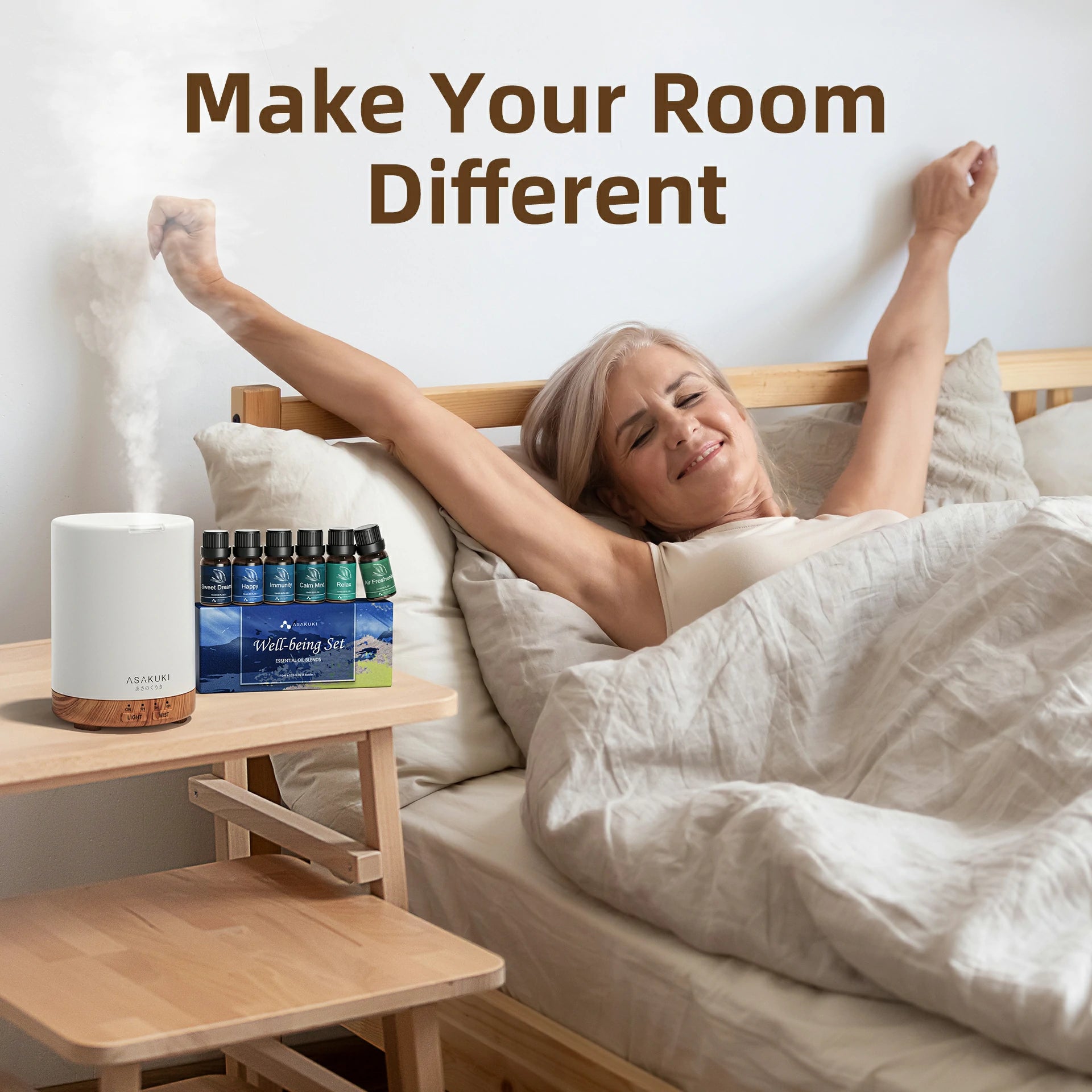 Dew Plus Light Wood Diffuser with 8Pcs*10ml Essential Oil Gift Set